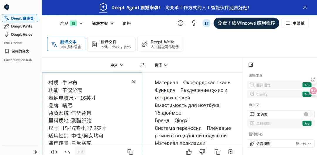 第二个话就是这个文字翻译,文字翻译的话我用的是这个Deepl这个工具。