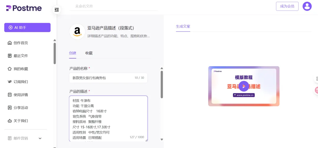 最后就是这个写商品描述的工具,因为咱们在上传商品时需要去写那个商品描述嘛,你要是想把那个描述写的专业一点,就可以用这个工具(postme)