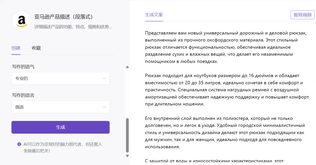 图二为最终展示效果,有俄文顺带还有中文翻译,可复制,如果不满意还可以让ai重新生成。