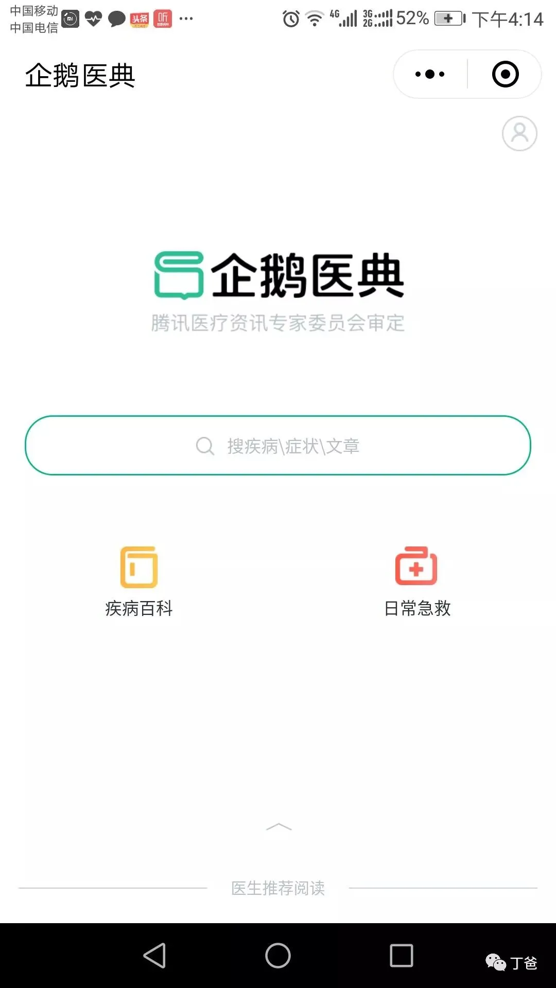 今天丁爸就给大家推荐腾讯最新出品的小程序-------企鹅医典