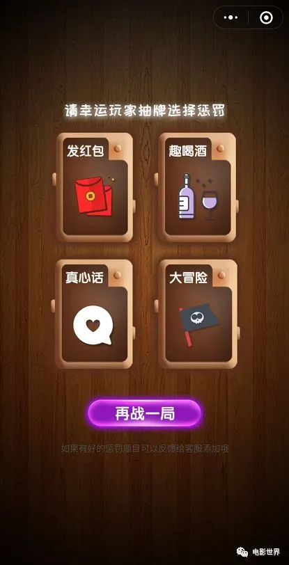 轮盘模式:这个就和我们平时玩儿的大转盘差不多,但不需要道具,点击中间的开始键,随机得到一种结果,最关键的是这个轮盘上的项目是可以自行修改的~