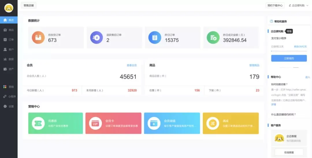 除了前台营销层面,企迈还希望打通门店的更多中、后台数据,借助小程序又推出了聚合支付、扫码点餐、外送到家、扫码购等服务,并开放了底层服务接口能力与ERP联合,实现线上线下互通,推动更多场景落地。