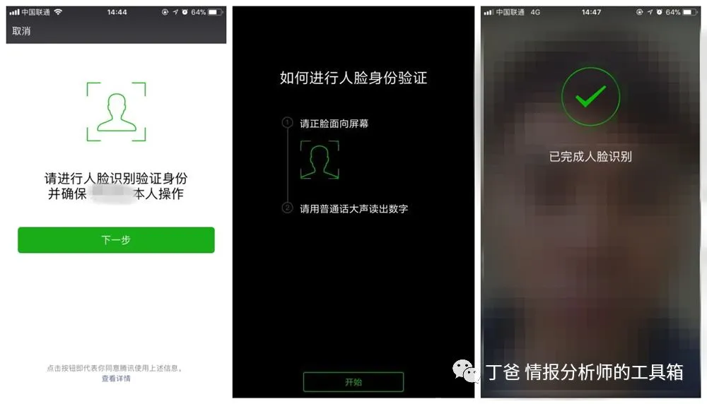 3、进行人脸识别认证,通过该小程序进行微信和证件的实名认证。