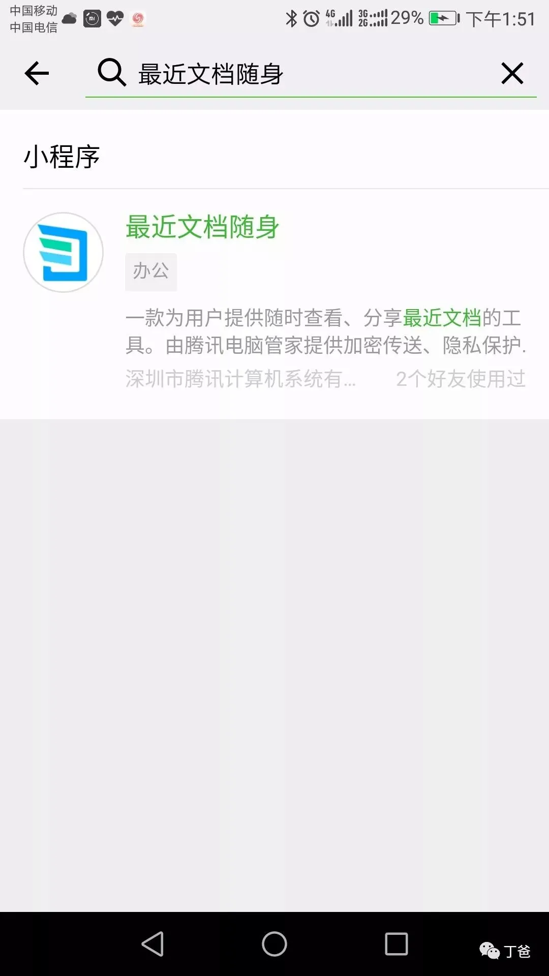 今天丁爸再给大家推荐一个腾讯的小程序-----“最近文档随身”,它也可以让你很方便的处理电脑上没有处理完的相关文档。