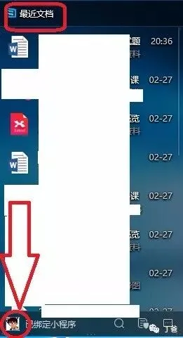 4、打开电脑屏幕,右上角会出现的最近文档框,点击左下角人形图标,会出现绑定“最近文档随身”小程序的二维码。用小程序扫描并绑定电脑。