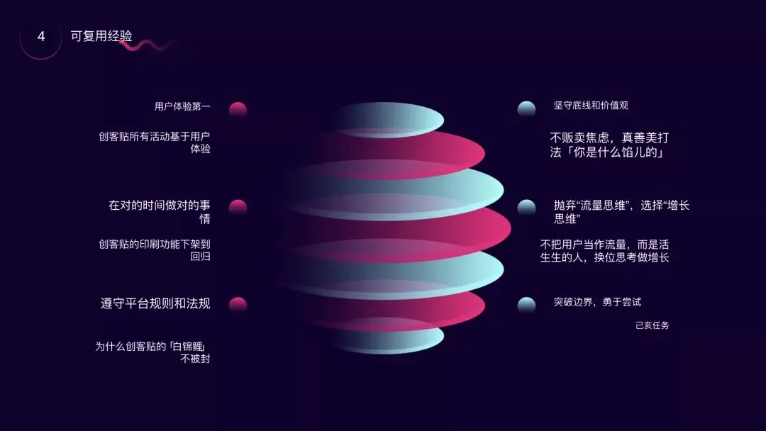 那么,我们就必须要抛弃流量思维。真的把每一个用户当作活生生的人,而不是“这来了一个流量”。这也是我反复提到的“共情”,不要去做自己都不能接受的活动,不要去做自己都不喜欢的活动。