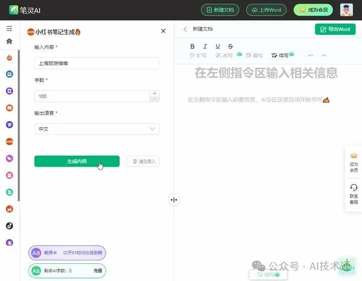 一个全能型 AI 创作助手,只要输入简单的要求和描述,就能帮我们自动生成各种想要的文稿内容。