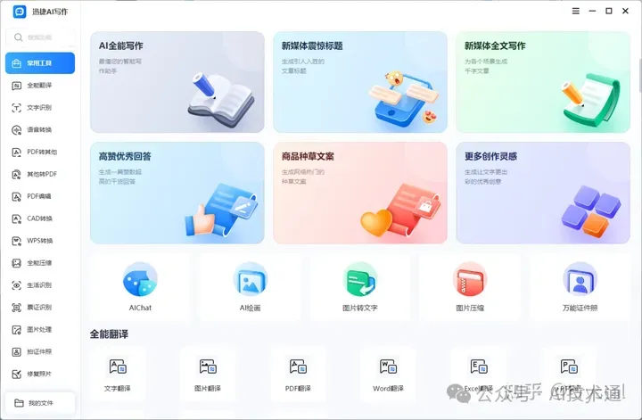 预设了多种实用的文章模型,包括新媒体文章、标题、种草文案、创意广告、干货回答等,还集成了「AI chat」「AI 绘画」「AI 编程」等AI工具。