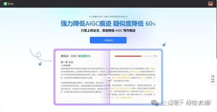 一款专业的AIGC去痕工具。今年的本科生毕业论文除了查重之外,又增加了AIGC检测,AIGC率高过30%则不允许答辩。笔灵只需两分钟,帮你把疑似度降至安全线内。