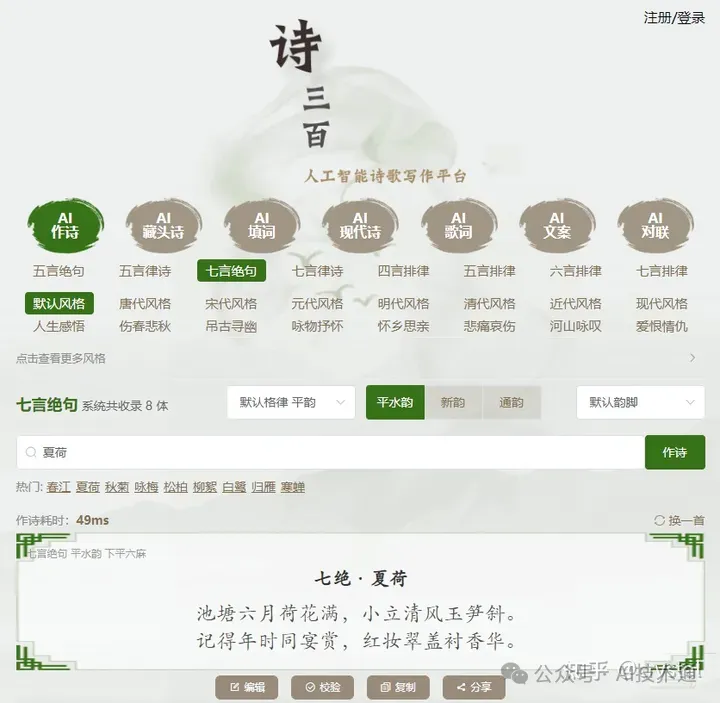 # AI作诗—诗三百·人工智能在线诗歌写作平台