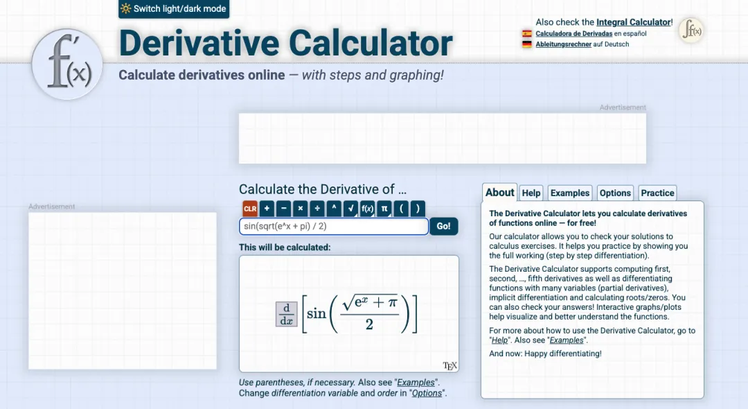 特色:能分步骤的算出一个式子的求导结果,过程演示非常详细。可以作为课内 IB、AP、A-Level 课程作业的检验,也可以用它来探索一些难题