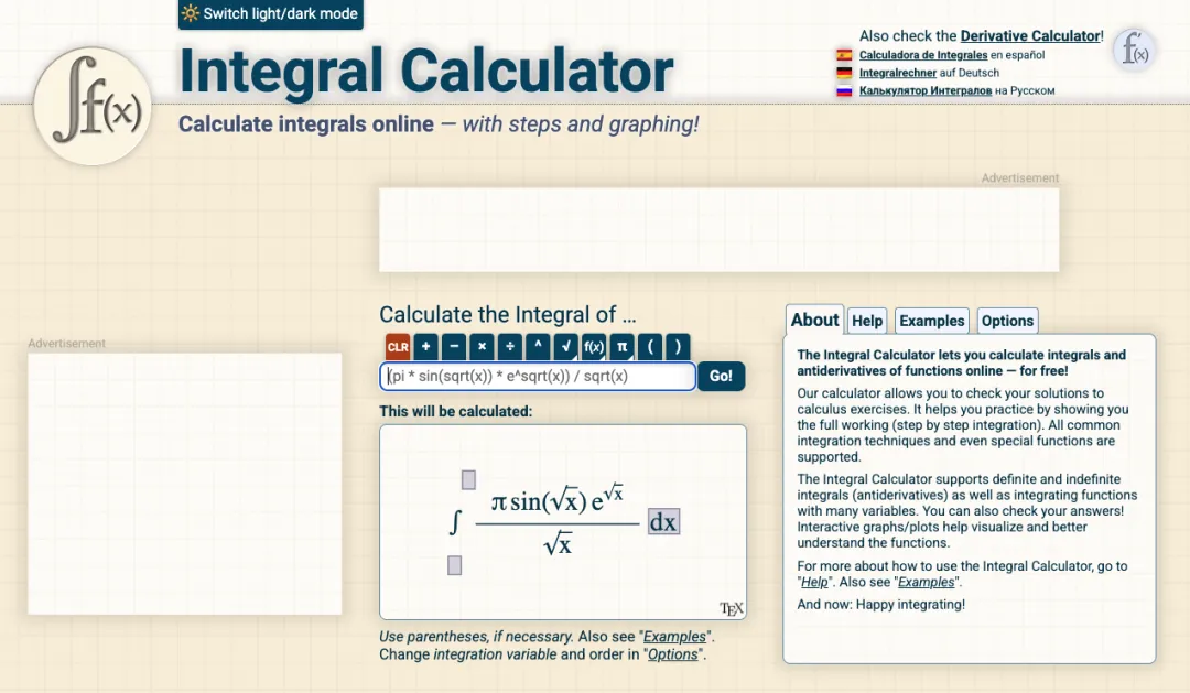 特色:能分步骤的算出一个式子的积分结果,过程演示非常详细,而且还有多种方法的演示!同样可以作为作为 IB、AP、A-Level 课程作业的检验,也可以用它来探索一些难题。