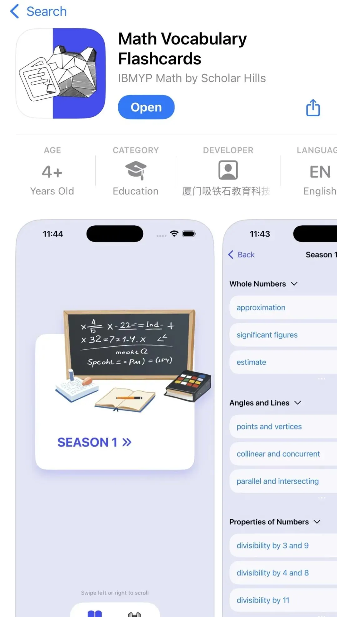 特色:这是一款非常实用的 APP,内容都是 IB 低年级阶段( MYP 等)或英制Pre-IGCSE的重要数学概念,学生们可以输入一个数学概念的中文或者英文,查到它的详细解释,比起一般的词典查词的好处在于:还能查到这个概念在例题中的使用,以及一组相应的练习题。这些都是词典所不具备的。