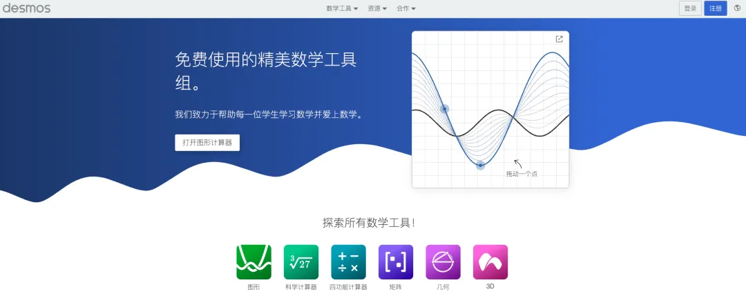 特色:高年级数学经常使用到画图功能,desmos 支持各种坐标系,多个曲线的画图功能。操作简洁。尤其适用于正在学习 function (函数)的同学。概念和图形相辅相成,有助于加深对函数的理解。早点学会到时候考 SAT 时也能起到大作用!