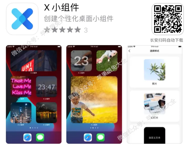 ● 简介:「X 小组件」一款iOS14小组件,可以将可以将照片、多张照片幻灯片、自定义文本、日期、时间等信息加入主屏幕小组件。