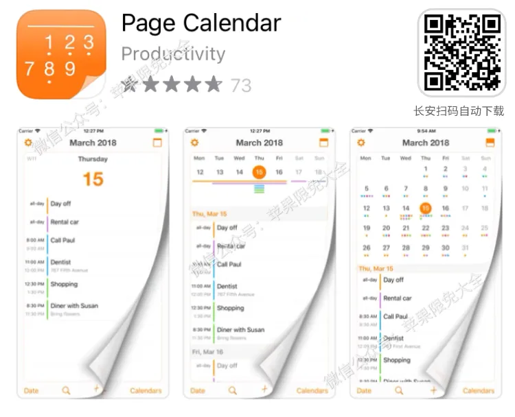 ● 简介: 「Page Calendar」一款直观明了事件日历,可快速查看你的待办事件。还可通过 iCloud 同步上传。