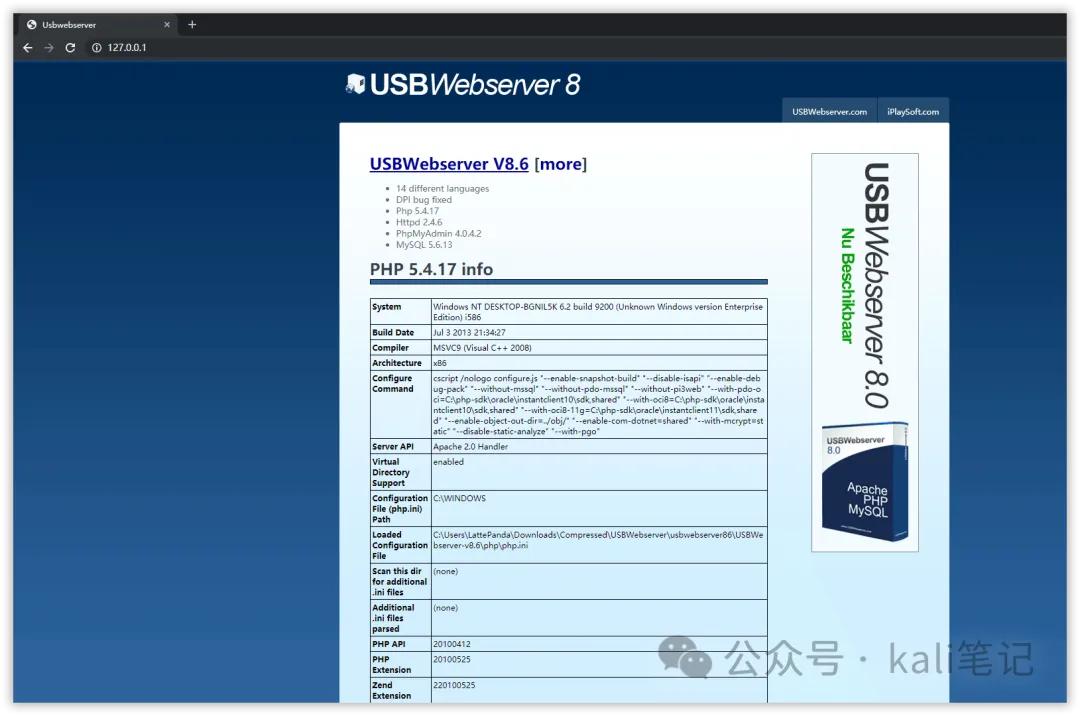 部署:首先我们在官网下载工具包。https://usbwebserver.yura.mk.ua/