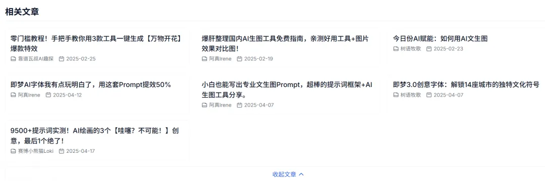 当点击某一个具体的工具时,会看到“相关文章”一栏,这是网站的运营团队成员写过的公众号文章,如果有感兴趣的文章点击后就行进行阅读。