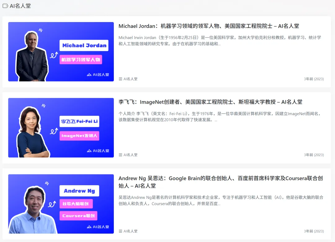 不光是工具导航, 还有"每日AI资讯"、"AI教程资源"、甚至还有"AI名人堂"。