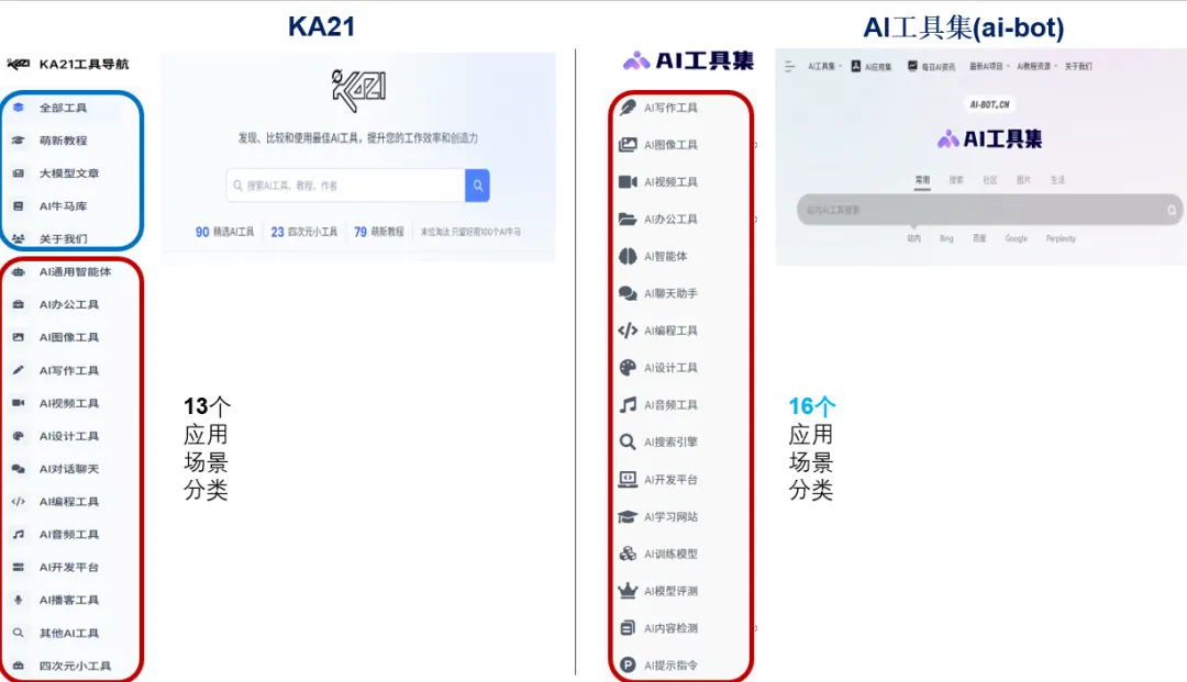 所以我搜索并重点体验了两个平台——KA21工具导航(ka21ai.cn)和AI工具集(ai-bot.cn)。