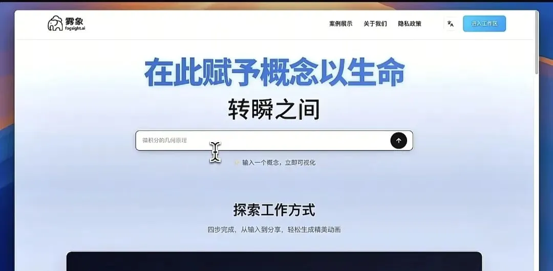 对于需要向客户或团队解释复杂概念的职场人来说,Fogsight提供了将枯燥内容转化为生动动画的解决方案。这个网站的独特优势在于其丰富的科普模板库,即使没有动画制作经验,用户也能通过简单拖拽创建专业级动画。