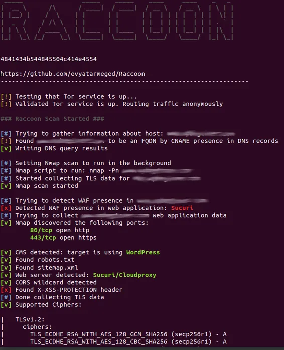 说白了,Raccoon是个基于Python的进攻性安全工具,重点在被动侦察和漏洞扫描上。作者用asyncio搞了异步执行,能同时跑多个任务,不用等一个完再下一个。仓库有3.4k星,不过最后更新是7个月前,主要是依赖升级,核心代码从2018年就没大动过了。功能上覆盖了DNS、WHOIS、TLS分析、端口扫描、子域名枚举啥的,还能查网页的CMS、敏感文件、甚至WAF防护。