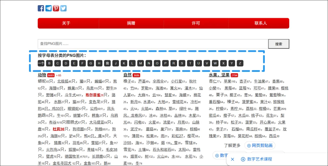 你们找素材看上面的字母,根据字母索引找。它首页全是英文单词分类,直接浏览器翻译一下就可以了,没有翻译的就去下载一个翻译插件。