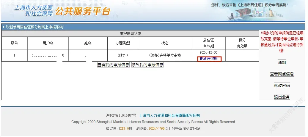 登录上海市民信息服务网,1年有效期需及时续签,对于有积分的一定得在居住证有效期才可以,建议大家及时更新!