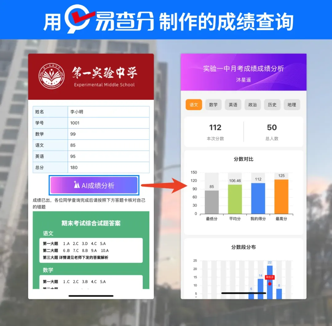 使用易查分就可以轻松解决这个问题,只需上传成绩表格即可瞬间转换成查成绩、等级小程序。学生家长进入小程序就能查,而且完全免费,只能查自己孩子的。