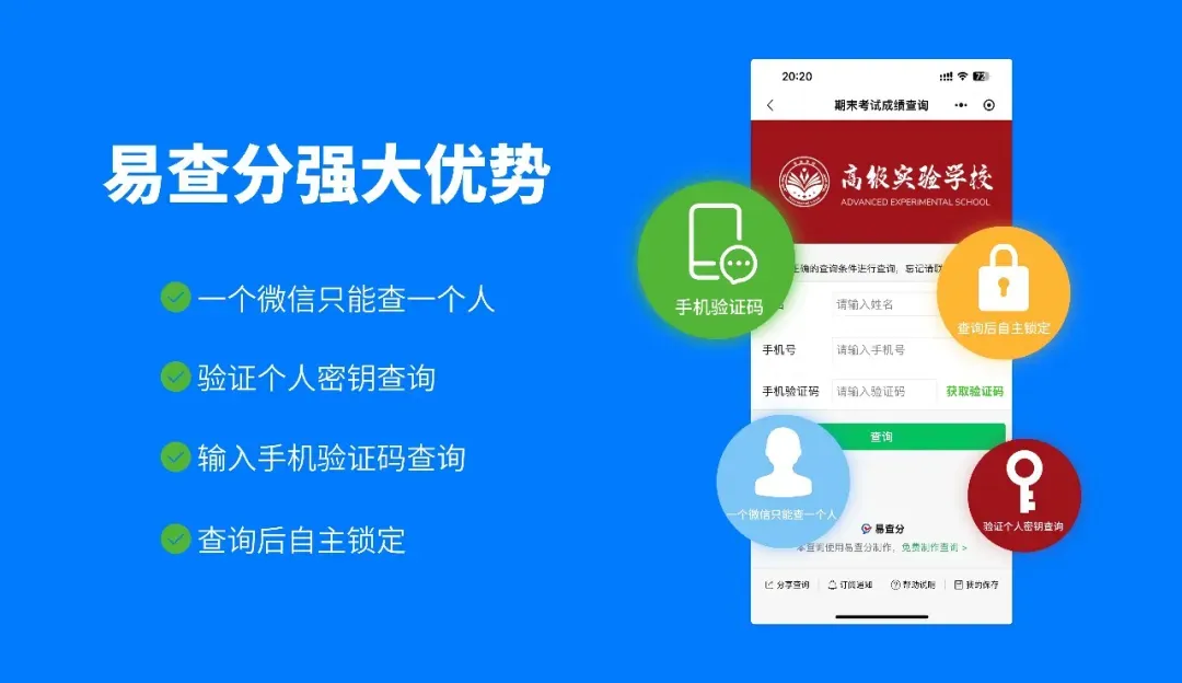 成绩查询小程序是供家长输入指定信息、快速查询孩子个人成绩的工具。用易查分发成绩,仅需1分钟,安全私密,家长只能查自己孩子的。对教师而言,选对工具就是提升效率的关键,既能省去手动统计、逐个发送的麻烦,又能避免成绩泄露、群内刷屏的困扰。