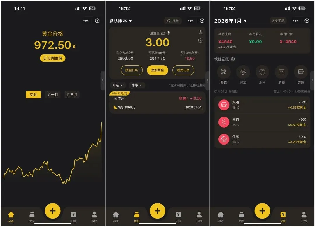 《金攒攒》小程序也凭借着简洁的界面与直观的操作,让黄金的资产管理变得轻松愉快。