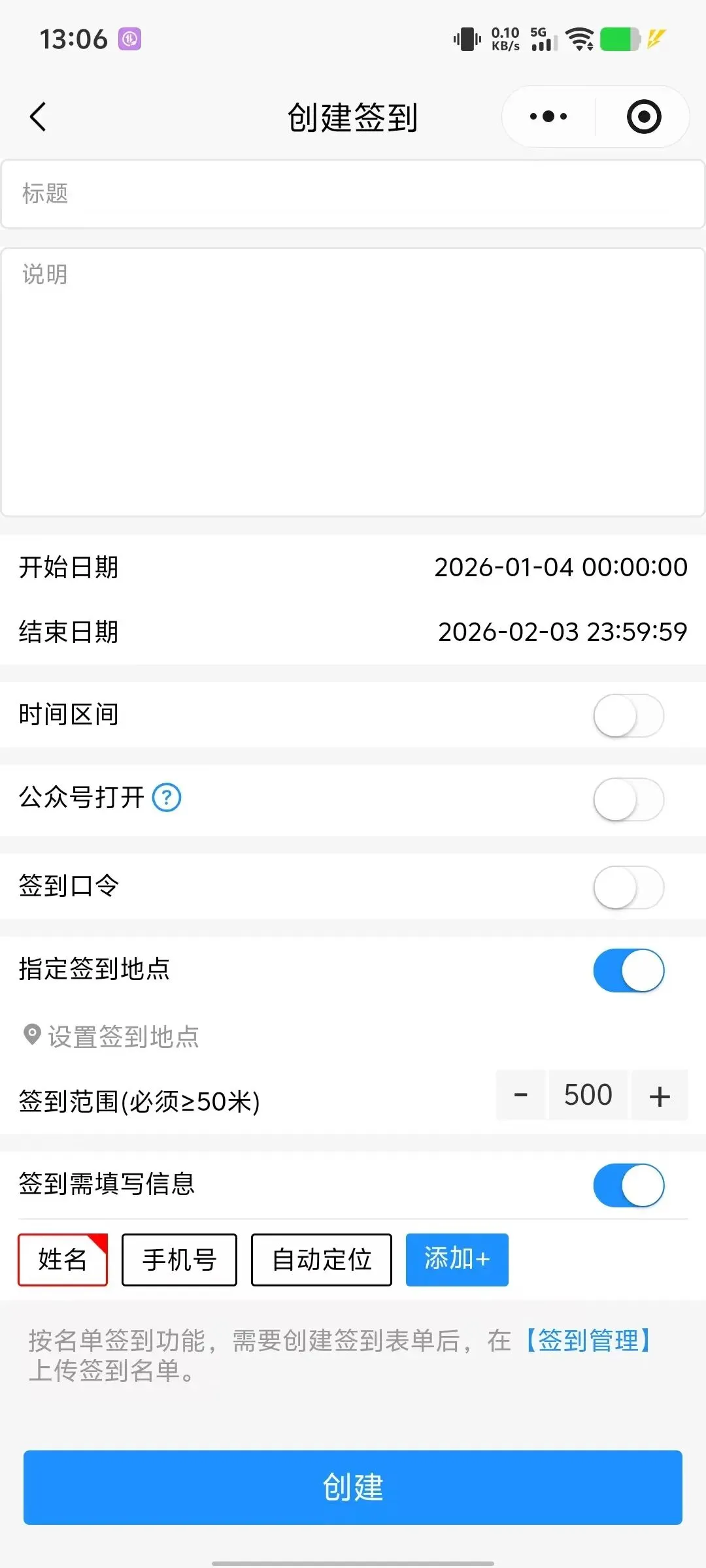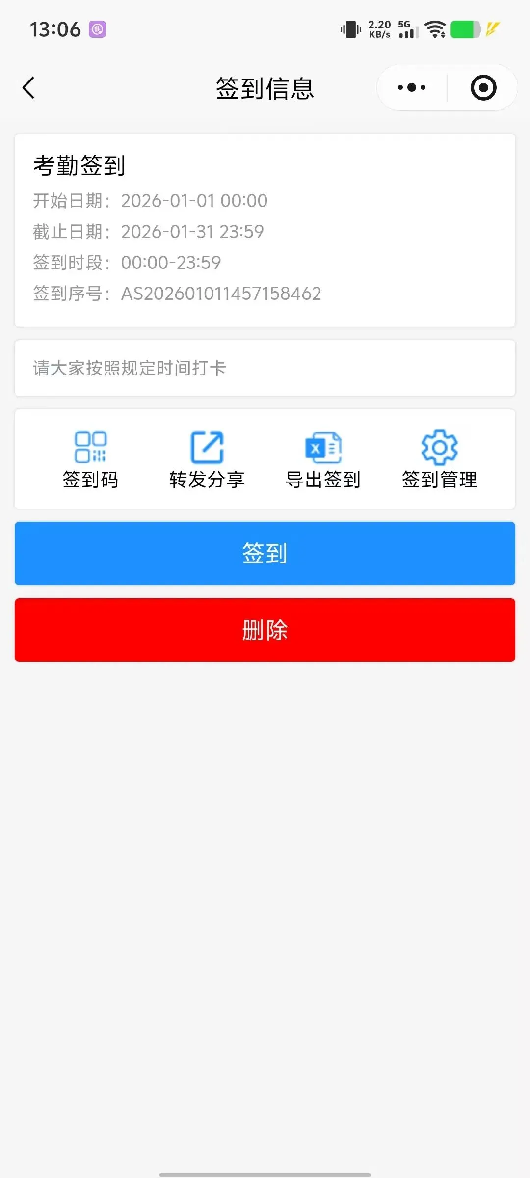小程序还可以设置签到时间段和签到次数,学生只能在指定的时间段进行定位签到,防止学生作弊,同时,小程序会自动统计签到信息,只需要管理员导出数据就可以了