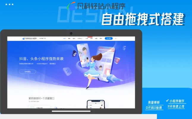 核心优势:零门槛,拖拽式编辑器;支持抖音、头条、百度、支付宝、微信快手小程序多终端,一次发布多平台同步