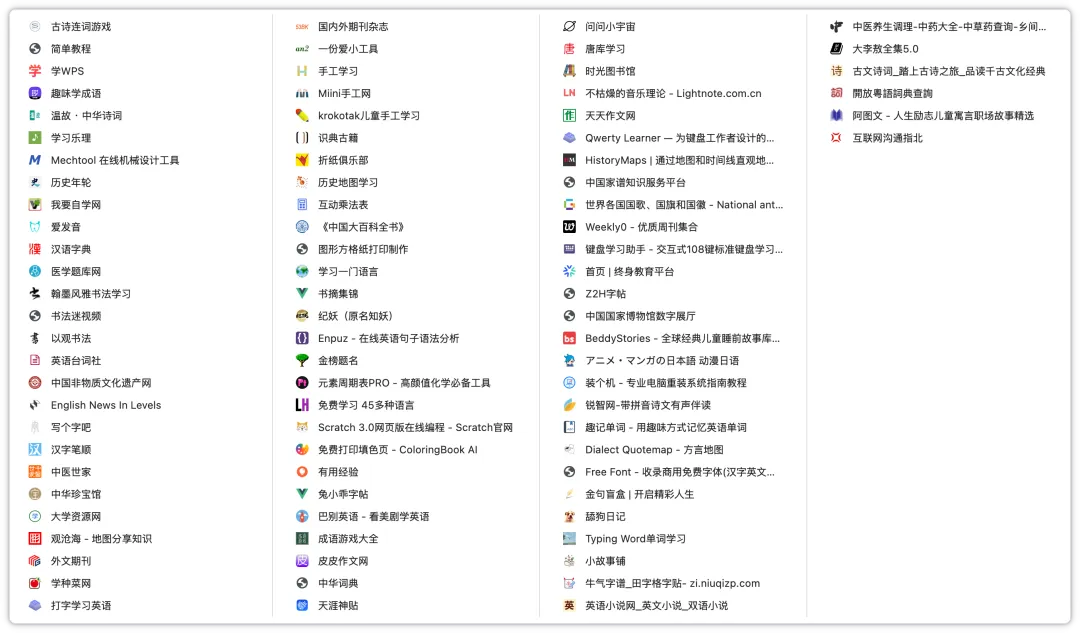 学习工具比较杂乱,无论是古诗词还是初高中大学资源以及社会有用的经验,各种期刊平台,字帖生成···,满足各行业的人群。