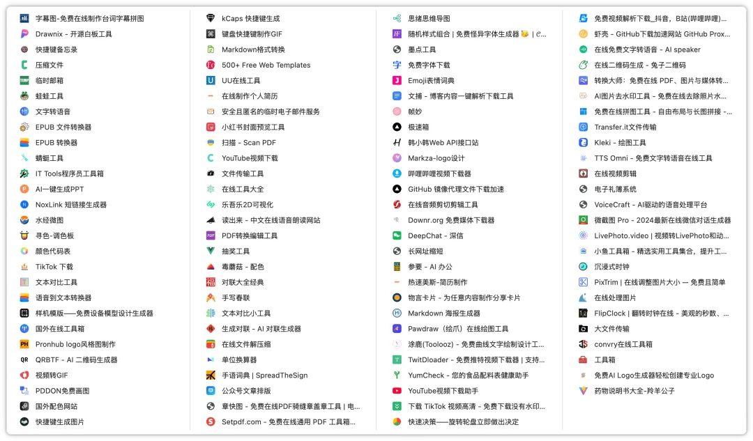 在线工具是我所有栏目中收录最多的,应该有上百个了,因为在线工具他们都非常实用,相当于多个APP的功能,无论是下载资源,处理图片视频还是程序员解决代码问题都可以,绝对堪称大宝藏。