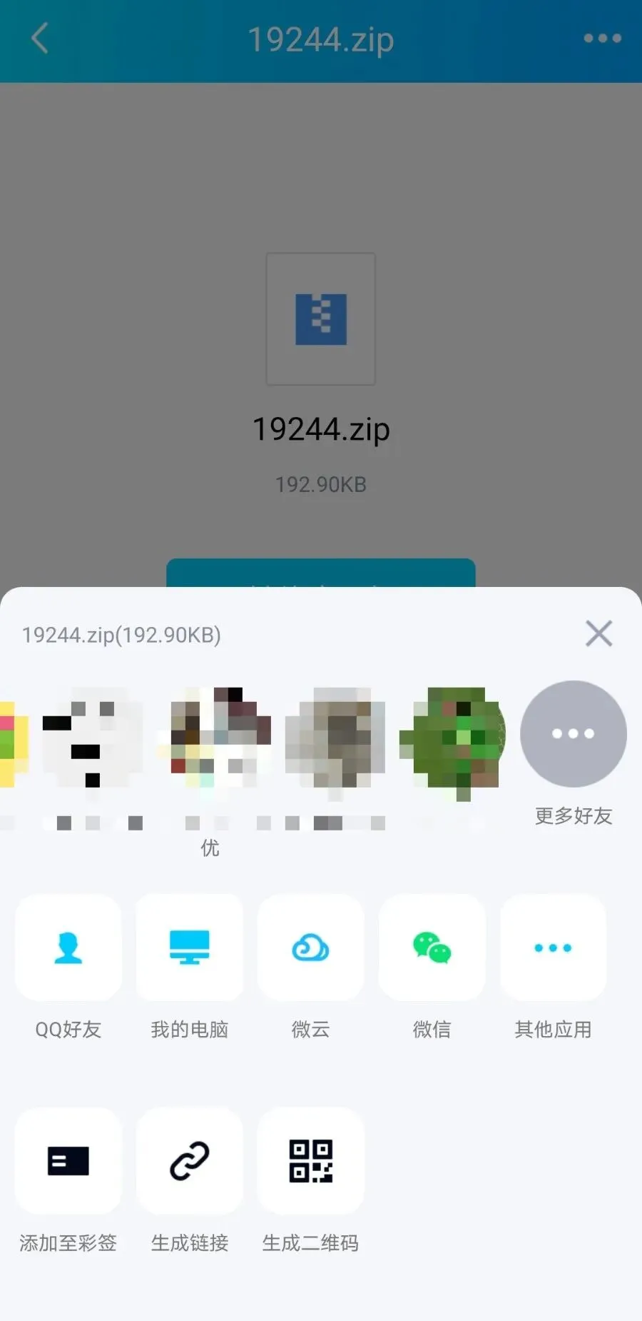 而想将微信上的文件分享到QQ上也不是完全没有办法,很多人都是先将文件保存到手机,然后找到存储目录中的这个文件,最后分享到QQ。